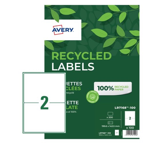 Avery Laser Labels Recycled 2 Per Sheet White (Pack of 200) LR7168-100