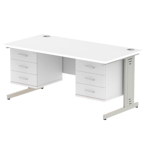 Impulse 1600 x 800mm Straight Desk White Top Silver Cable Managed Leg 2 x 3 Drawer Fixed Pedestal