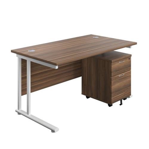 Twin Upright Rectangular Desk + Mobile 2 Drawer Pedestal 1400X800 Dark Walnut/White Ref TWU1480BUNDWWH2
